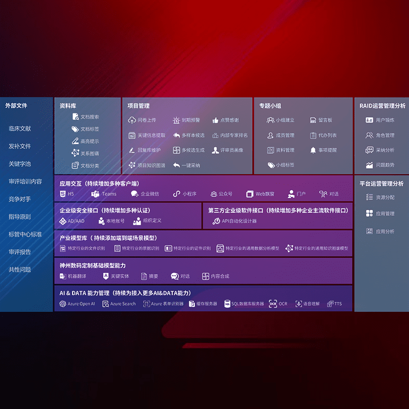 医疗器械产品上市前,,,要熟悉严格与繁复评审标准,,,,整理分析监管机构指导文件中的海量信息。。。企业急需一个智能化解决方案,,,,提升知识管理效率,,,,提高评审通过率,,,,以提升其市场竞争力。。